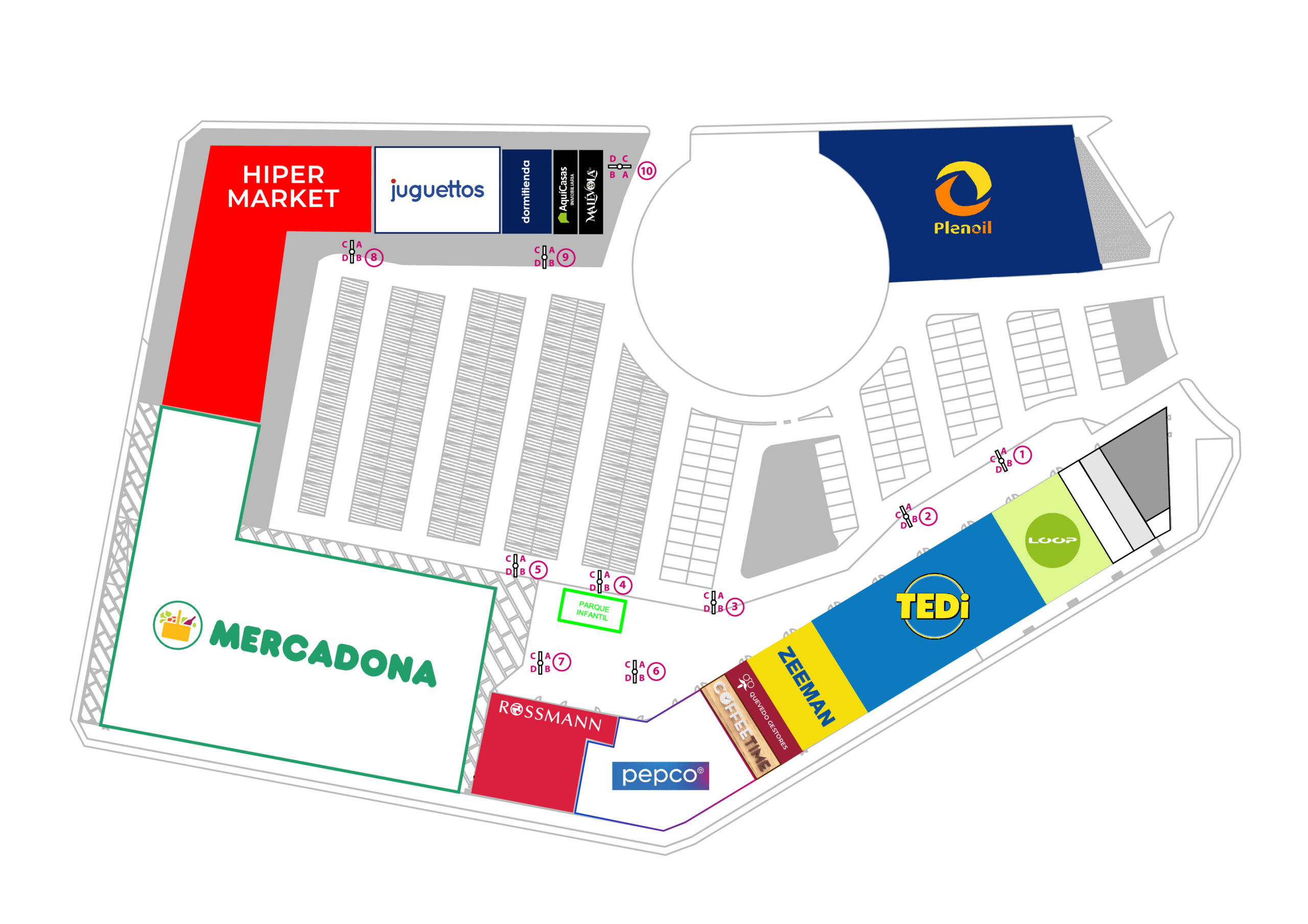 Nuestro recinto comercial cuenta con una superficie de 21.892 m2, de los cuales 8200m2 de Superficie Bruta Alquilable (SBA) y 13692m2 de estacionamiento al aire libre abierto las 24/7. Además, de un parque infantil donde los más pequeños pueden pasar un rato de diversión mientras los adultos están de compras.